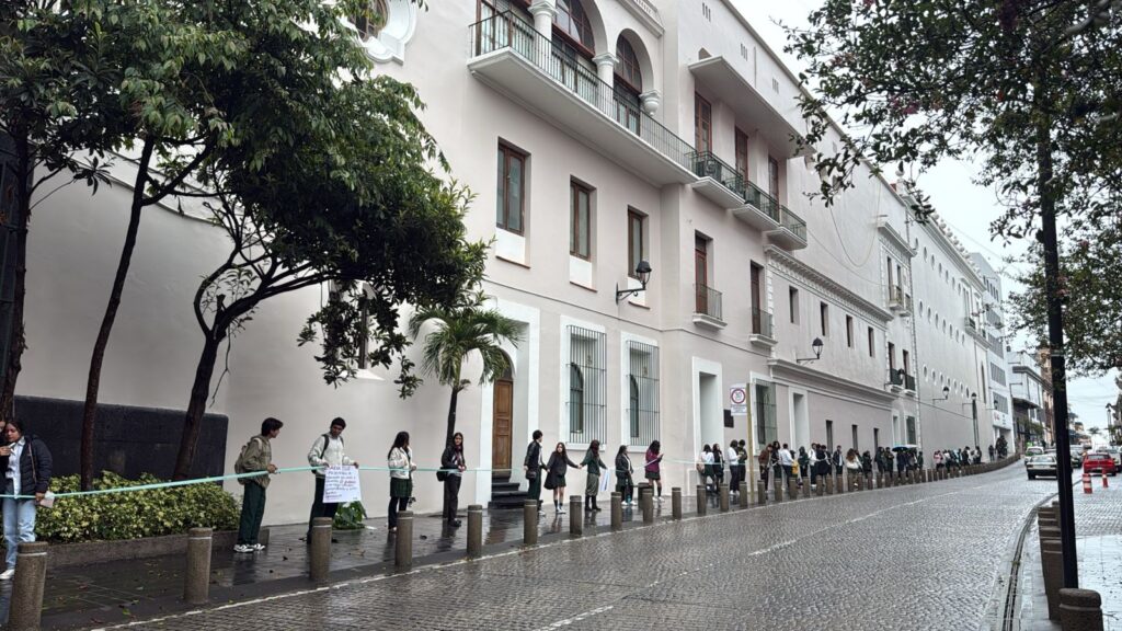 Desde primeras horas de la mañana, las y los jóvenes comenzaron a congregarse en el centro de la capital veracruzana, portando pancartas y lanzando consignas en defensa de quien consideran un referente institucional en la vida académica del plantel.