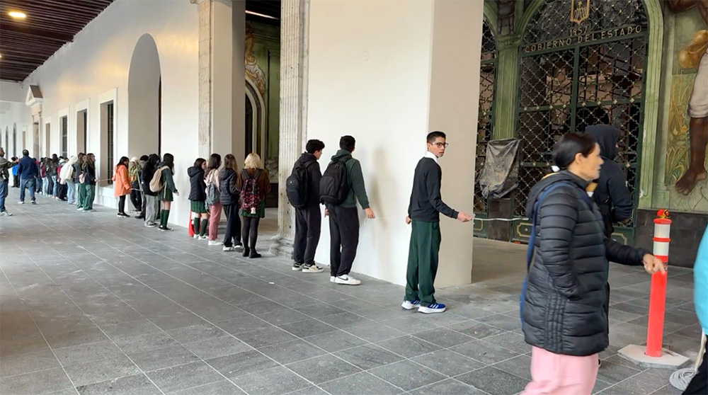 Nahle dialoga con estudiantes a la entrada de cochera de Palacio