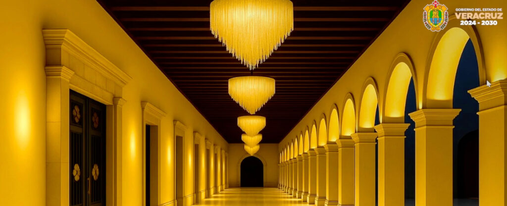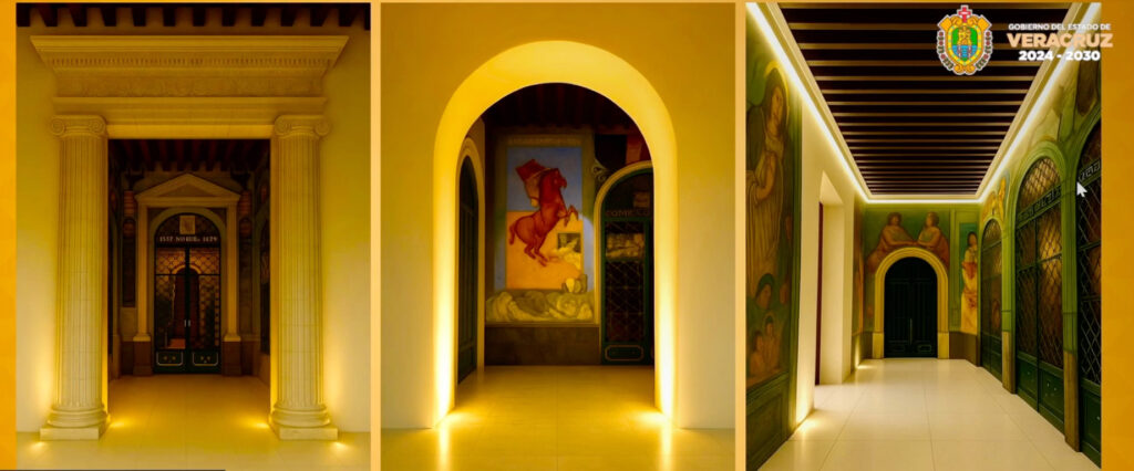 Xalapa, Veracruz. Comenzaron raspando pintura y terminaron levantando pisos, techos, domos y drenaje. Así va la rehabilitación del Palacio de Gobierno de Veracruz, según lo mostrado por el secretario de Gobierno Ricardo Ahued. Las imágenes hablan solas: de la oscuridad a la lámpara de araña.