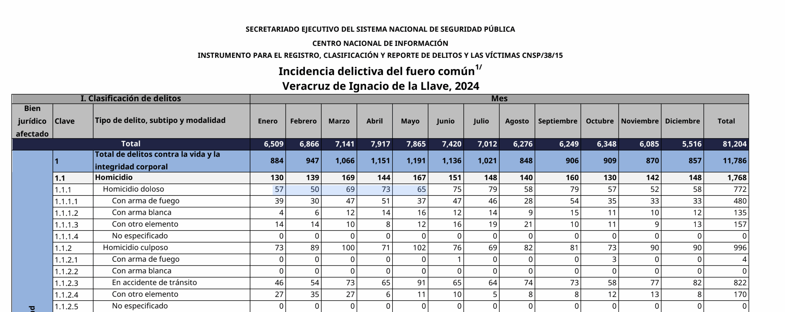 Las cifras, aún preliminares, son recopiladas por un grupo de análisis conformado por la SSPC, SEDENA, SEMAR y la Fiscalía General de la República, y tienen un carácter táctico-estratégico. La estadística oficial definitiva es publicada por el Secretariado Ejecutivo del Sistema Nacional de Seguridad Pública (SESNSP).