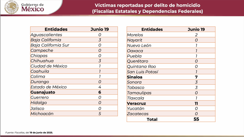 Otro dato: el 19 de junio fue el día más violento del mes no solo para Veracruz, sino para todo el país. Con 11 asesinatos registrados en distintas regiones del estado, la entidad superó ese día incluso a estados como Sinaloa y Guanajuato, que históricamente encabezan los listados de violencia.