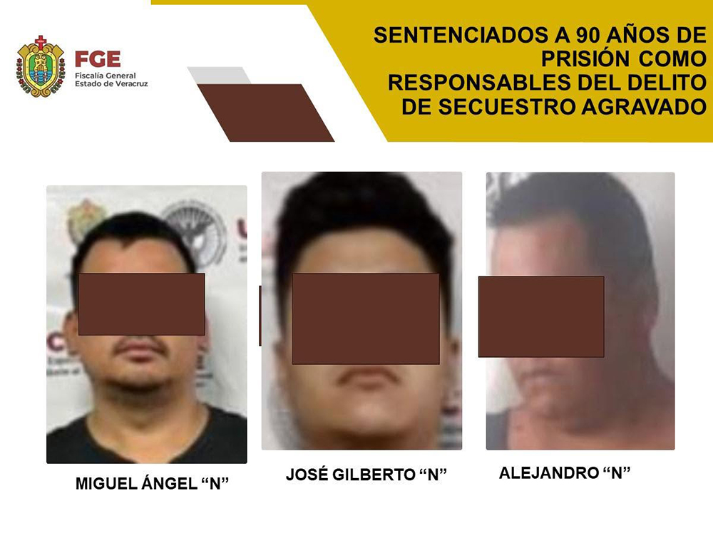 La Fiscalía General del Estado de Veracruz informó que, tras un proceso judicial concluido bajo el expediente 06/2024, se logró acreditar la responsabilidad penal de Miguel Ángel “N”, José Gilberto “N” y Alejandro “N”, quienes fueron declarados culpables del delito de secuestro agravado.
