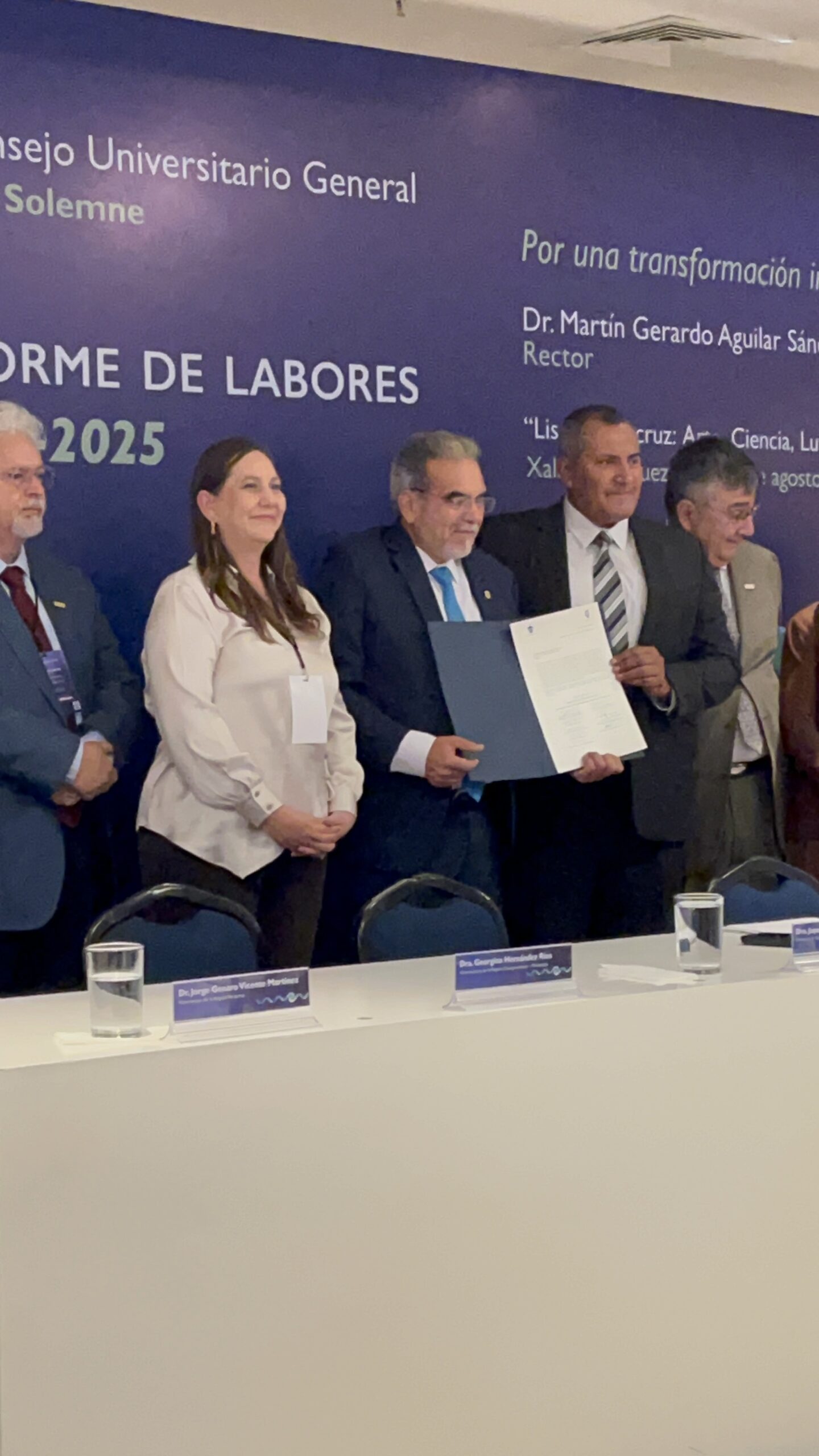 Xalapa, VeracruzLa Junta de Gobierno de la Universidad Veracruzana (UV) otorgó a Martín Aguilar Sánchez la constancia que oficializa la prórroga de su nombramiento como rector para un segundo periodo del 1 de septiembre de 2025 al 31 de agosto de 2029.