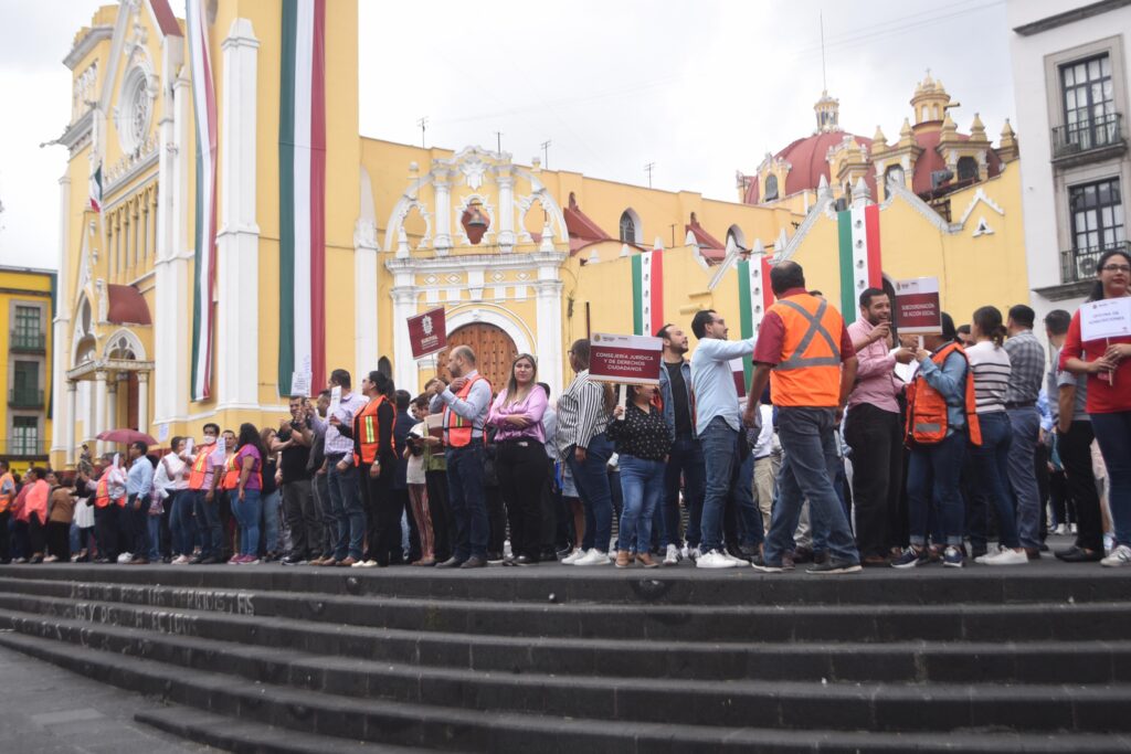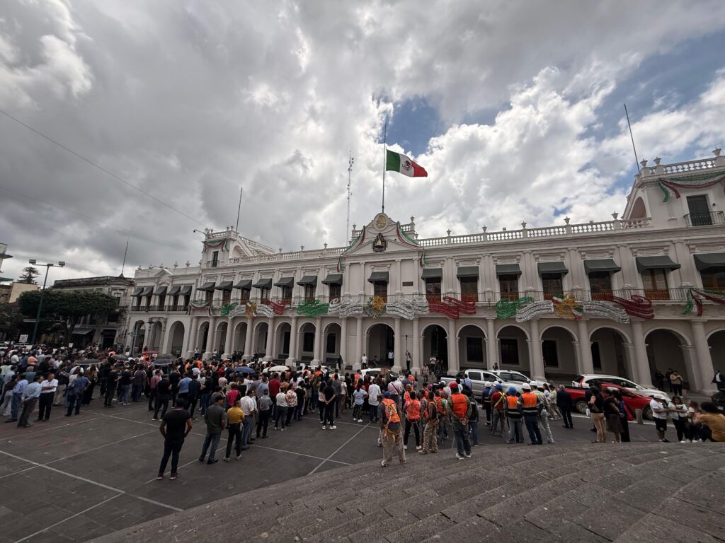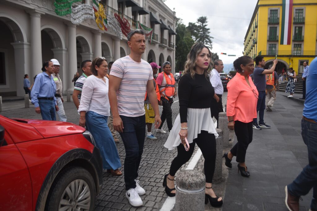 Alrededor de las 12:00 horas, trabajadores de Palacio de Gobierno, la Secretaría de Seguridad Pública y el Ayuntamiento de Xalapa evacuaron sus oficinas para concentrarse en la plaza Lerdo y parque Juárez, donde se llevó a cabo el ejercicio preventivo.