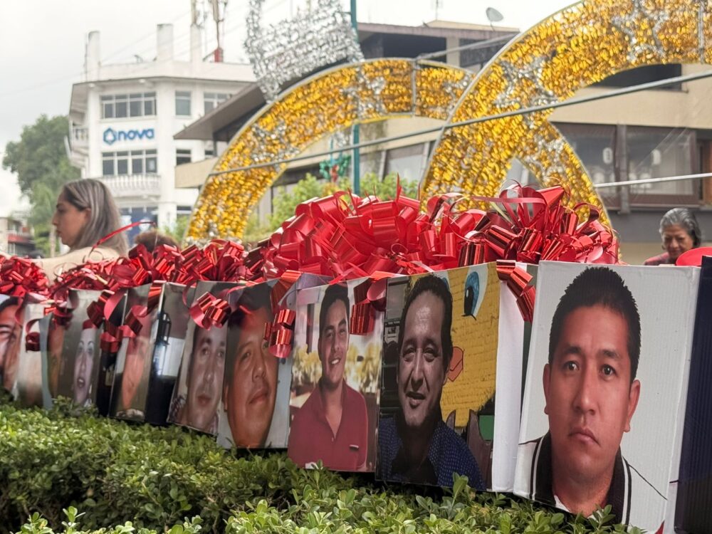 Desde hace cinco años, el colectivo Familiares Enlaces Xalapa sostiene esta memoria visible: adornar con dolor y dignidad para que ni la ciudadanía ni las autoridades olviden. “Este árbol ya es de las familias”, dice Victoria Delgadillo. Y lo es.