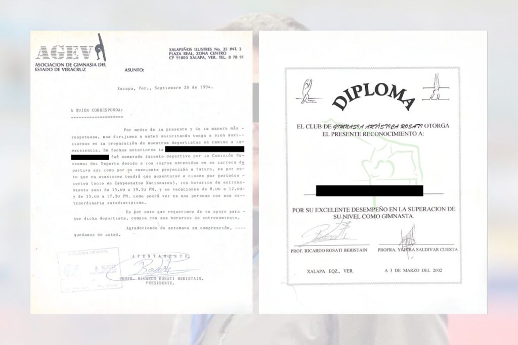 Uno de ellos, fechado el 28 de septiembre de 1994, corresponde a la Asociación de Gimnasia del Estado de Veracruz, donde Ricardo “N” aparece como presidente del organismo.