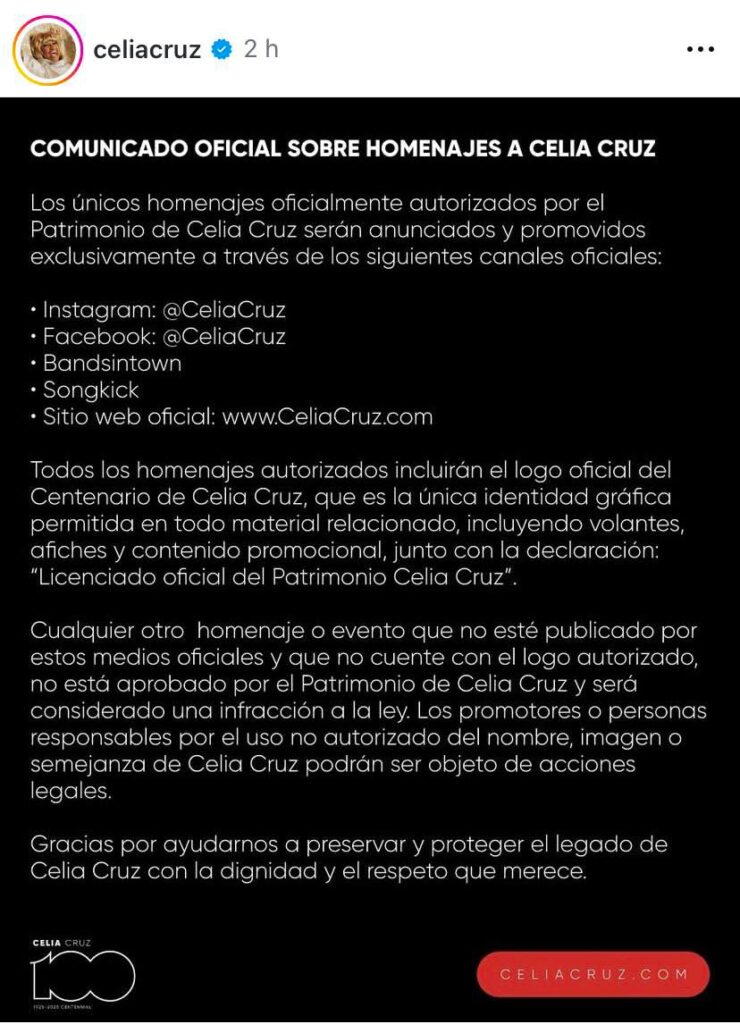 Gobierno de Veracruz retira homenaje a Celia Cruz tras reclamo legal; Nahle reconoce omisión