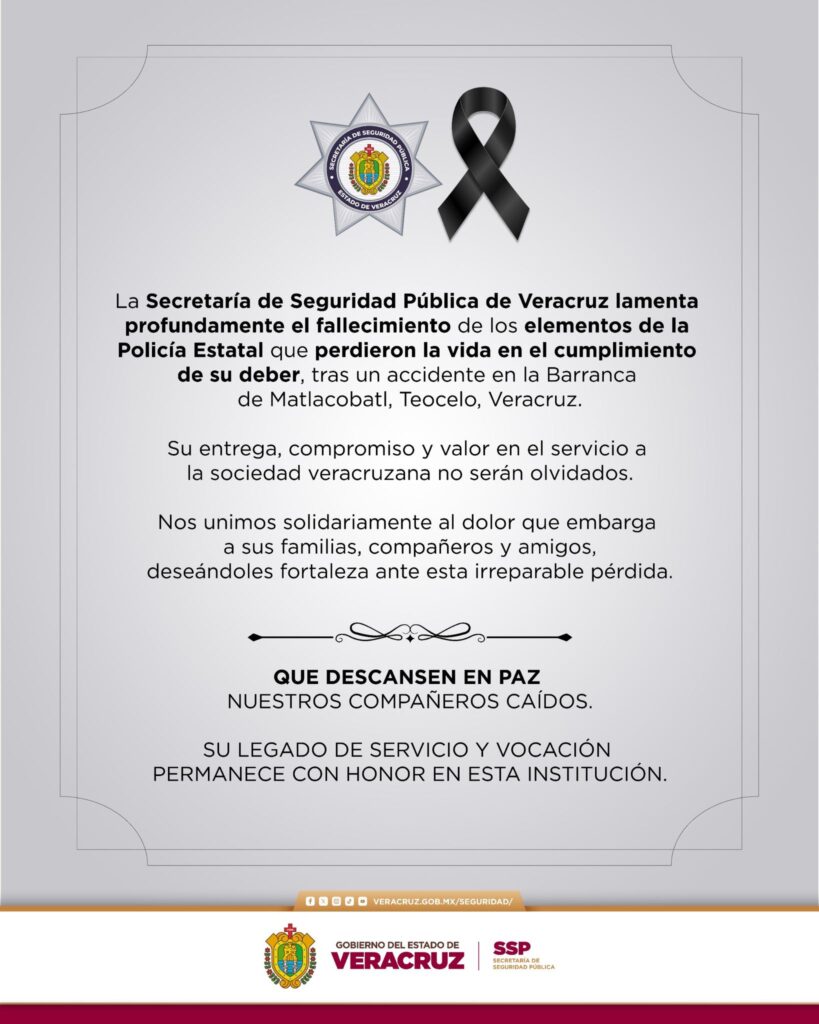 Teocelo, Veracruz. Dos elementos de la Secretaría de Seguridad Pública (SSP) de Veracruz perdieron la vida y cuatro más resultaron heridos, luego de que la