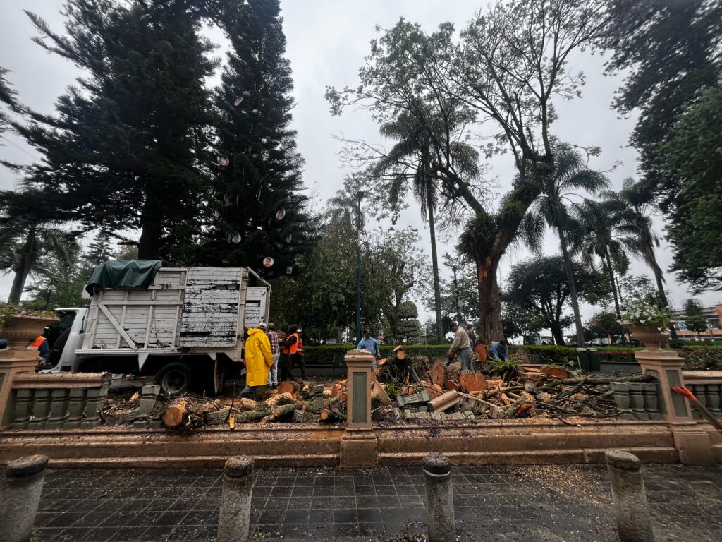 Xalapa, Veracruz. La mañana de este martes, un árbol ubicado en el emblemático parque Benito Juárez, en el centro de la ciudad, cayó debido a