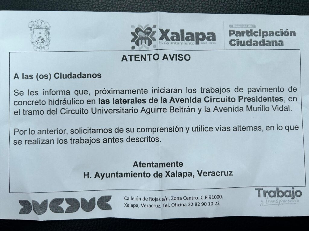 Xalapa, Veracruz. Avenidas y calles con alta afluencia vehicular cerrarán en los próximos días por trabajos de pavimentación. El gobierno de la ciudad anticipó las
