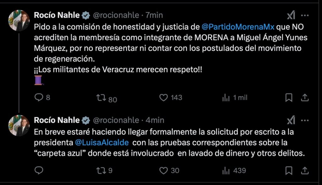 Xalapa, Veracruz. La gobernadora de Veracruz, Rocío Nahle García pidió a la Comisión de Honestidad y Justicia de Morena no acreditar la afiliación del senador