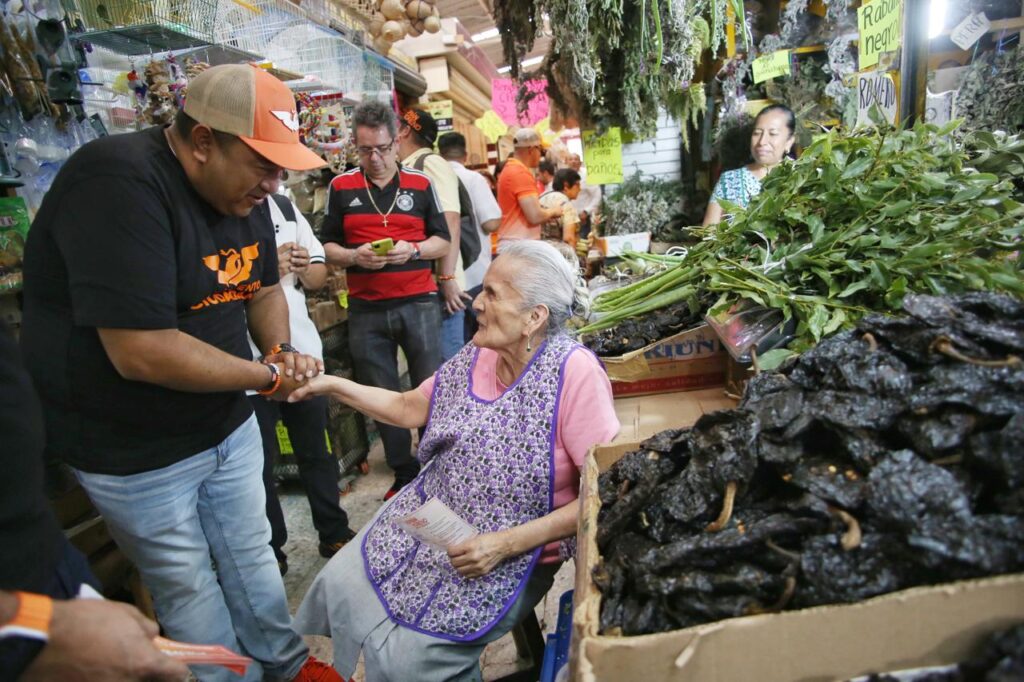 Xalapa, Veracruz. El precandidato de Movimiento Ciudadano a la alcaldía de Xalapa, Román Moreno Hernández, realizó una visita al Mercado Jauregui, ubicado en el corazón